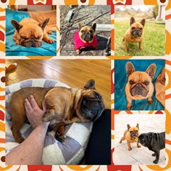 Jag (aka Hippo) is an approximately 8-year-old fawn French Bulldog with a heart full of love. Despite coming from a difficult backyard breeding situation, Jag is incredibly gentle, trusting, and happiest when he?s right by your side. From day one, he's been a total snugglebug, following his people everywhere and soaking up belly rubs.