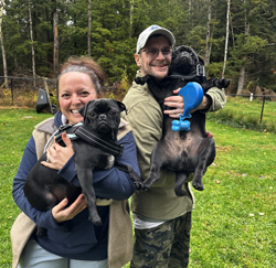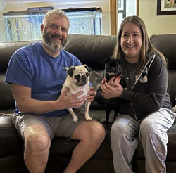 This wonderful family knows pugs well—they’ve had four since 2003, including two adopted through GMPR. Their children were especially excited to welcome young, playful companions, since they’d only experienced life with elderly pugs before. With Michelle working from home, Sophie and Colt will have constant companionship, plenty of playtime, and all the cuddles they could dream of.