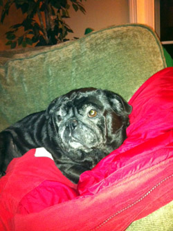 12/29/11 - Meet pug # 132 Olivia- a 12 yr old senior pug surrendered in NY.